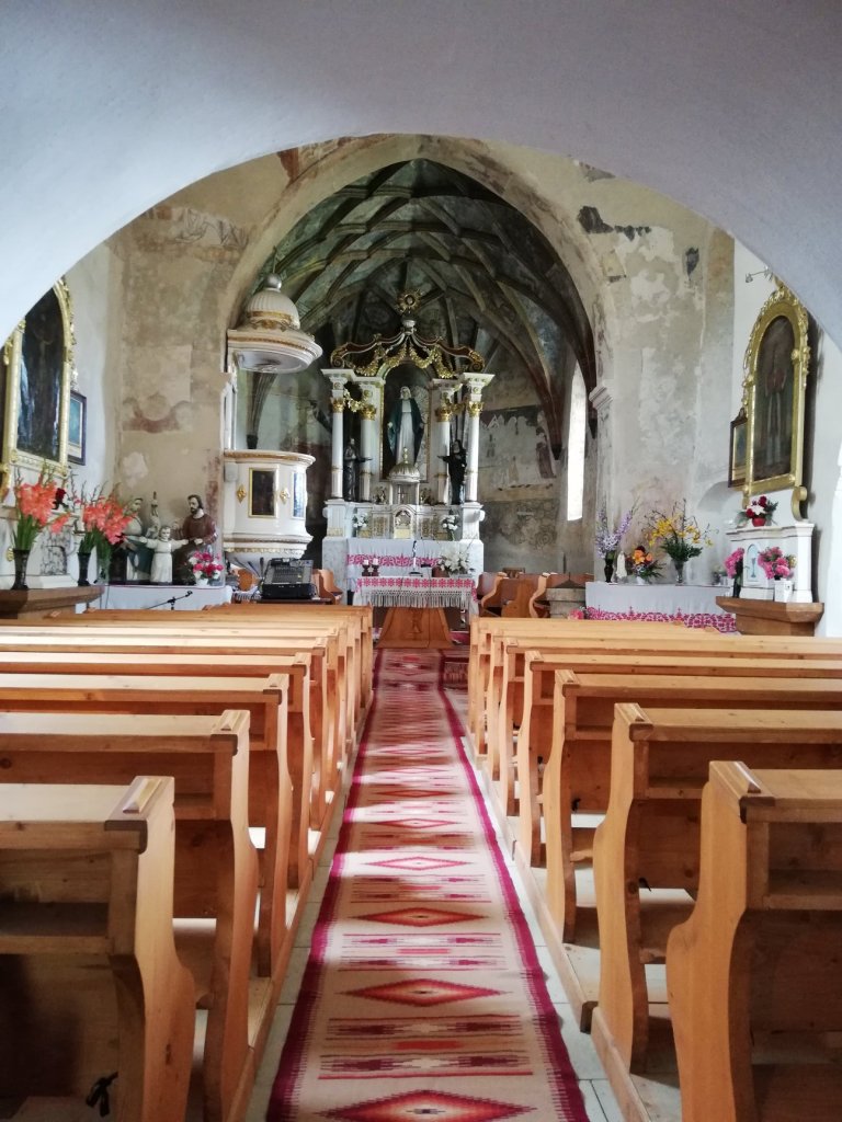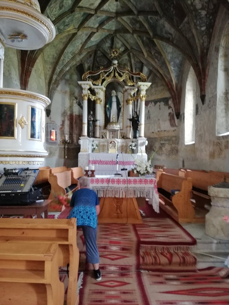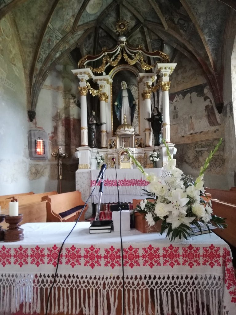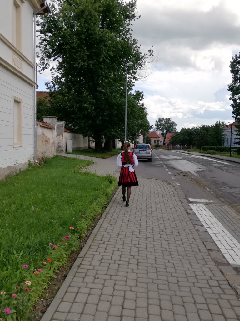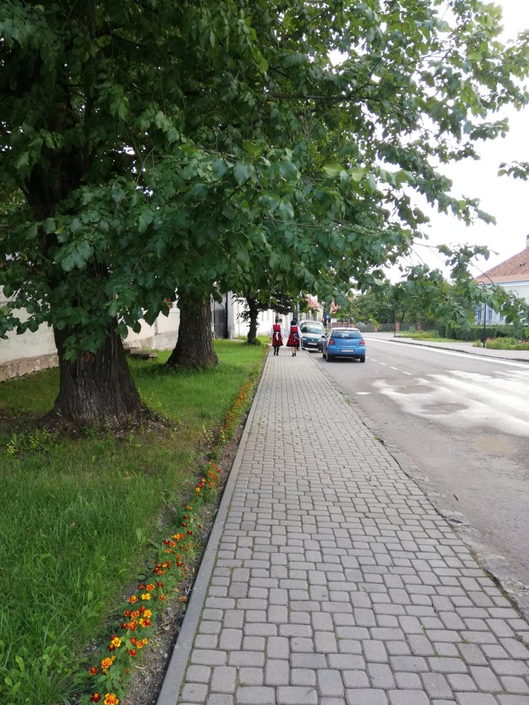 Am vizitat satul într-o duminică după-amiaza. Străzile – aproape pustii. M-am putut plimba ca într-un muzeu în aer liber. Din când în când, apăreau femei și fete îmbrăcate în port popular secuiesc. – Este vreo sărbătoare, de sunteți îmbrăcate așa? – Nu. Mergem la biserică, se face sfințirea noului preot. (Nu știu dacă îmi amintesc corect termenul, posibil să fi fost ceva echivalent ”sfințirii”.) Aveau ceva proaspăt și totodată liniștit în legănatul costumelor. O bucurie firească. M-am gândit involuntar la mixul etniilor. Le-am lăsat la biserica lor și doi pași mai în față am găsit florile copilăriei din grădina bunicii, ”șerpoaice”, iar pe un zid scris ”We are too young to be sad”. Dovadă a mixului generațiilor.